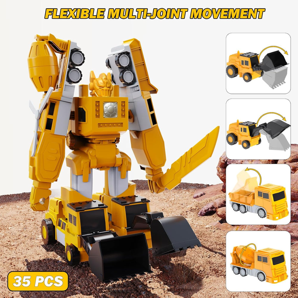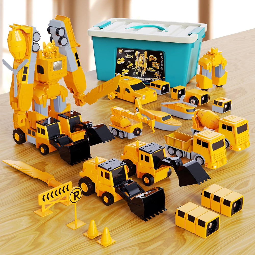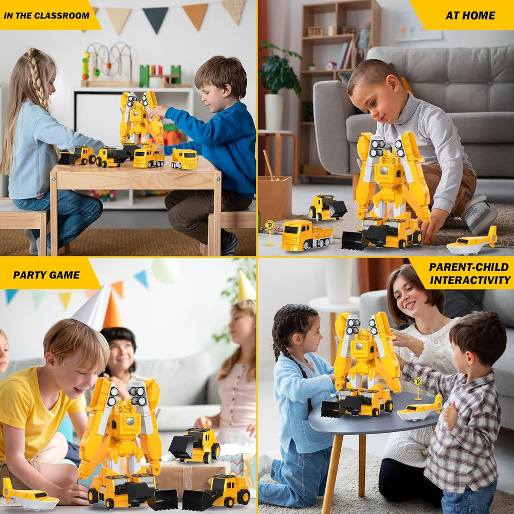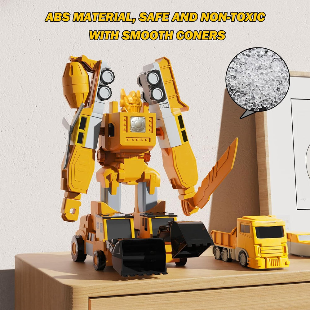 TRANSFORMEREND ONTWERP: De auto's in de set, zoals vrachtwagens, vorkheftrucks, graafmachines, enz., kunnen worden samengevoegd tot robots, wat zorgt voor eindeloos vermaak en ontdekkingsplezier.